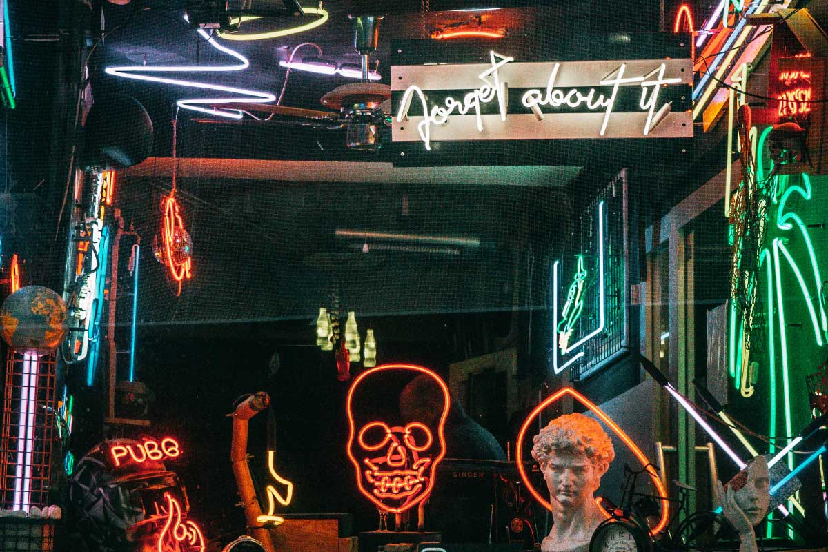استفاده از چراغهای نئونی، راهکار دیگری است که شادی و جذابیت فضا را دو چندان میکند چون چراغهای نئونی در شکلها و رنگهای متنوع قابل دسترس هستند و به راحتی میتوان آنها تهیه کرد.