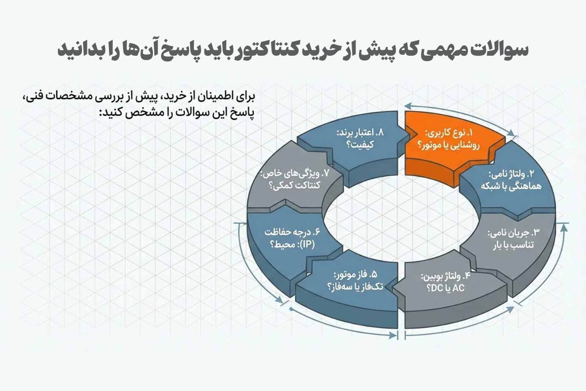 برای آن که بعد از انتخاب کنتاکتور از انتخاب خود رضایت کافی را داشته باشید، پیش از خرید آن، حتما جواب سوالات زیر را پیدا کنید.