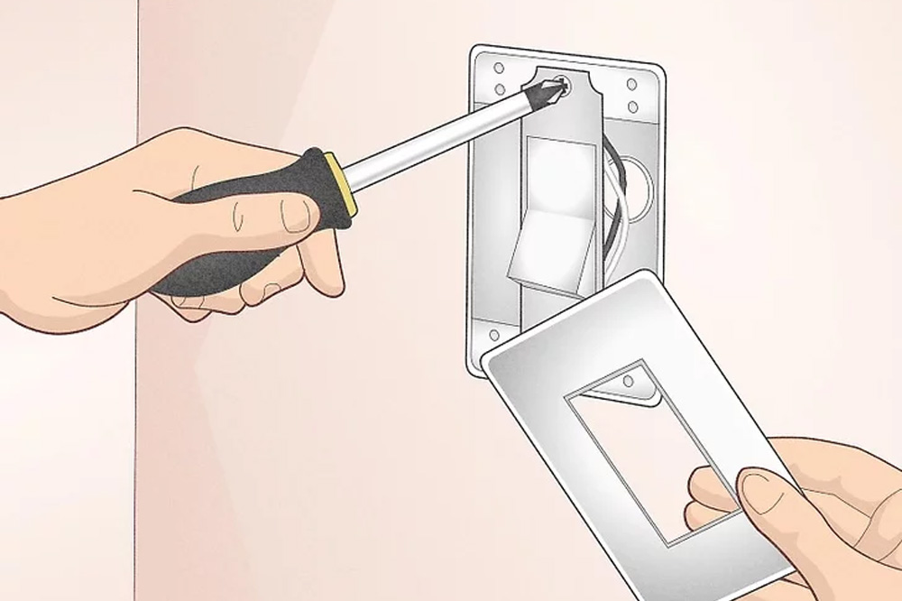 با استفاده از یک پیچگوشتی، قاب کلید و پریز موردنظر خود را جدا کنید. در این مرحله احتمالا دو عدد پیچ میبینید که مغزی کلید و پریز را نگه داشته است. با پیچگوشتی، دو پیچ را باز کرده و از جایگاه خارج سازید. در این مرحله بهتر است از سیمکشی کلید، عکس بگیرید تا در صورت نیاز به آن مراجعه کنید.