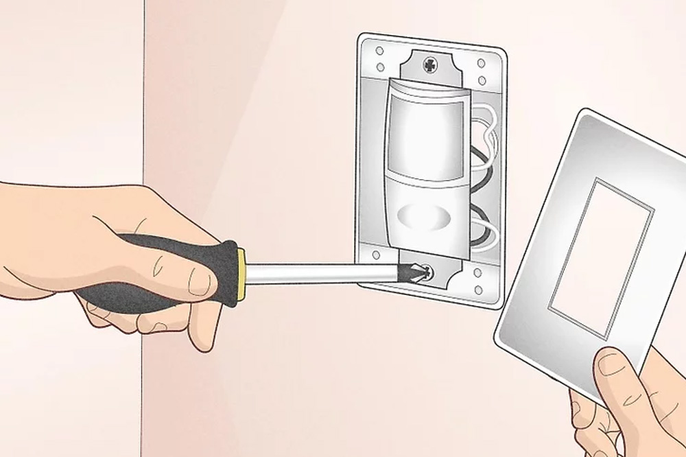 در مرحله آخر نصب سنسور حرکتی، پیچها را ببندید و قاب را نیز در جایگاه قرار دهید.