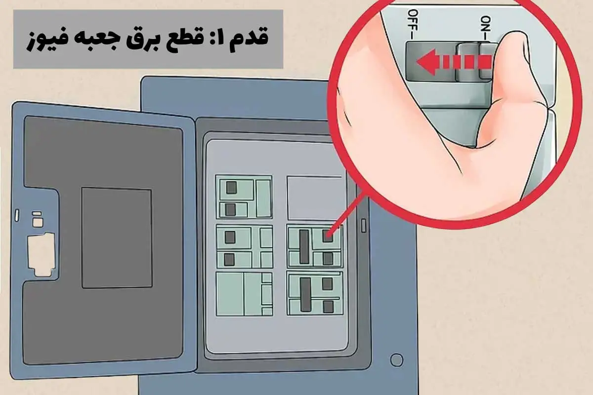 با استفاده از کلیدهایی که در جعبه فیوز برق وجود دارد، جریان الکتریکی در سیم و کابل ساختمان را قطع کنید. برای اینکه مطمئن شوید در برق در سیمها وجود ندارد میتوانید از فازمتر استفاده کنید. روش استفاده از فازمتر در همین مطلب و در قسمت لوازم موردنیاز توضیح داده شده است.