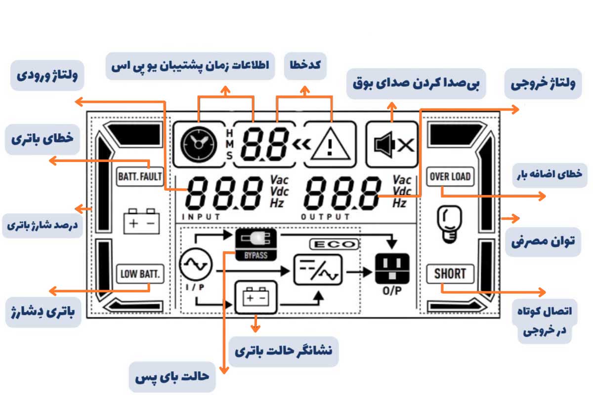 برخی از مدلهای یو پی اس دارای یک نمایشگر جهت نشان دادن وضعیت دستگاه، خطاهای احتمالی و… هستند. برای هر یک از پارامترهای تعیین شده هم یک نشانگر LED یا LCD نصب میشود. در ادامه مطلب معنی و مفهوم نشانگرهای چند نمونه از انواع یو پی اس را معرفی میکنیم:
