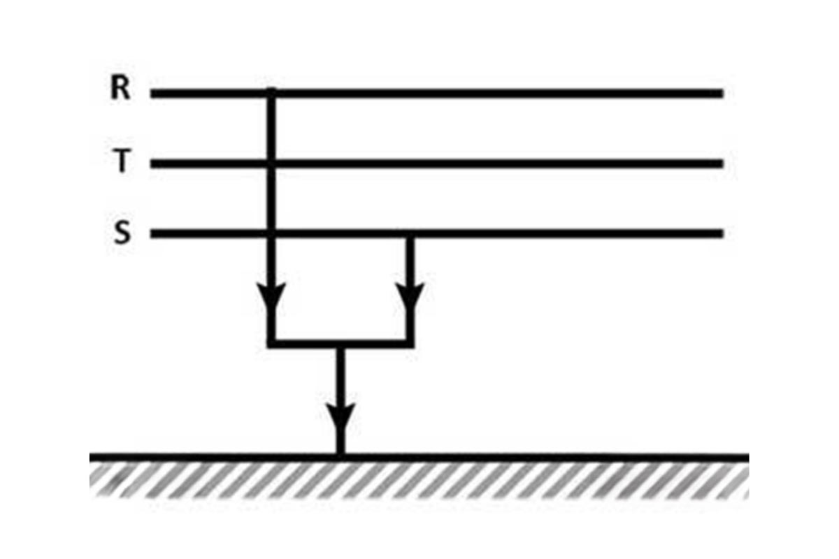 1. اتصال کوتاه فاز به زمین: حدود ۸۰٪ از اتصالات کوتاه از نوع فاز به زمین است پس شایع‌ترین نوع اتصال کوتاه محسوب می‌شود. در این مدل، یکی از فازها با زمین یا بدنه تجهیزات برخورد دارد. شدت جریان این نوع اتصال کمتر از نوع سه فاز و دو فاز با هم است.