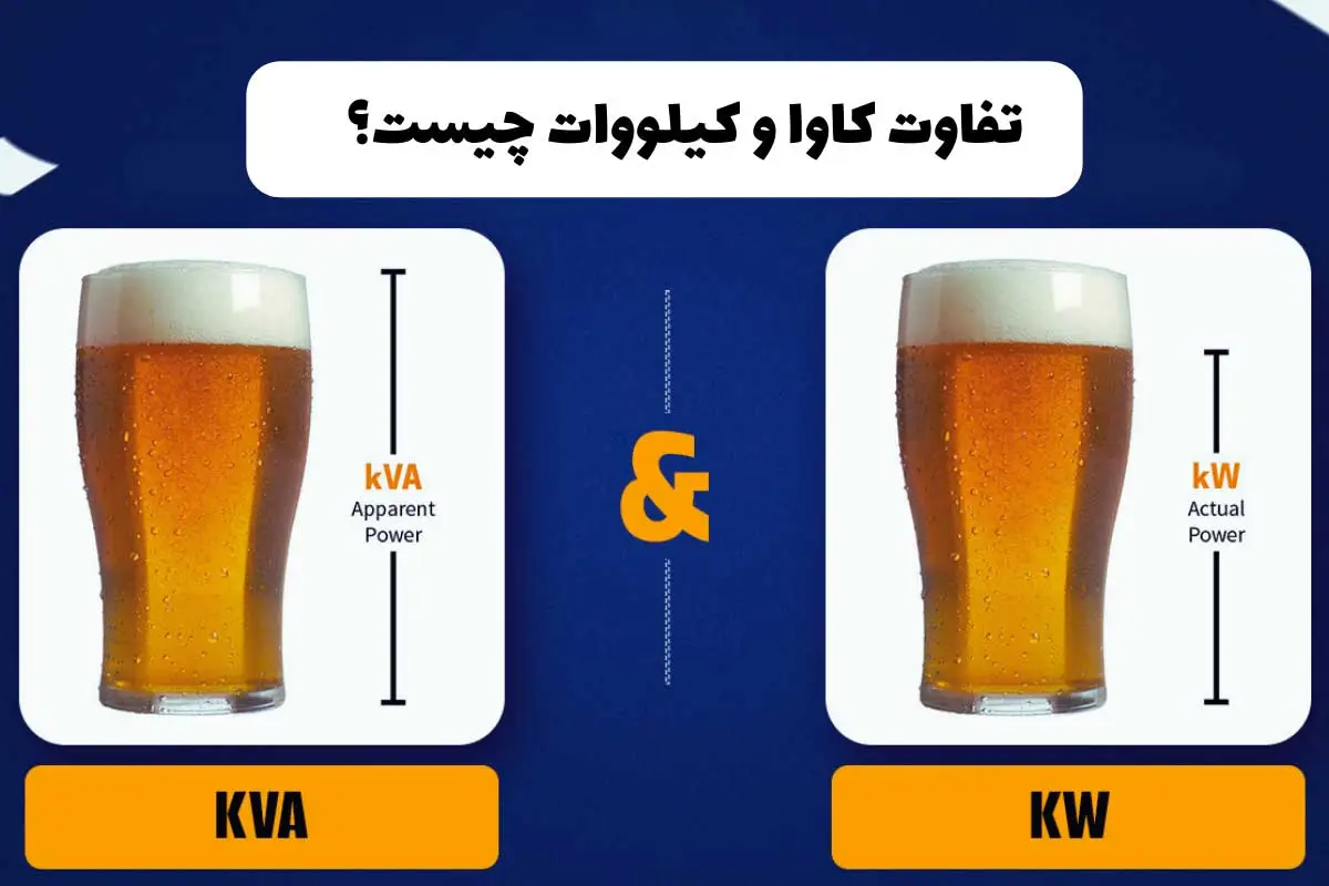 کیلووات (kW) واحد توان حقیقی یا توان اکتیو است که مقدار واقعی توان مصرفی یا تولیدی را نشان میدهد. این توان برای انجام کار واقعی مانند گرم کردن یک المنت یا چرخاندن یک موتور استفاده میشود. کاوا (kVA) واحد توان ظاهری یا توان مجازی است که مجموع ریشه توان حقیقی (کیلووات) و توان راکتیو (کیلووار) است. توان راکتیو برای ایجاد میدان مغناطیسی در ترانسفورماتورها یا موتورهای الکتریکی مورد نیاز است.
