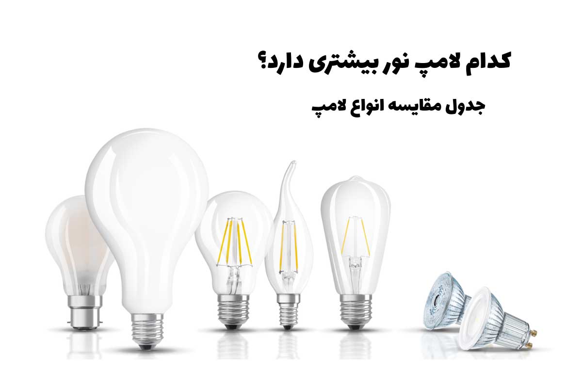 کدام لامپ نور بیشتری دارد؟ | جدول مقایسه نوردهی انواع لامپ