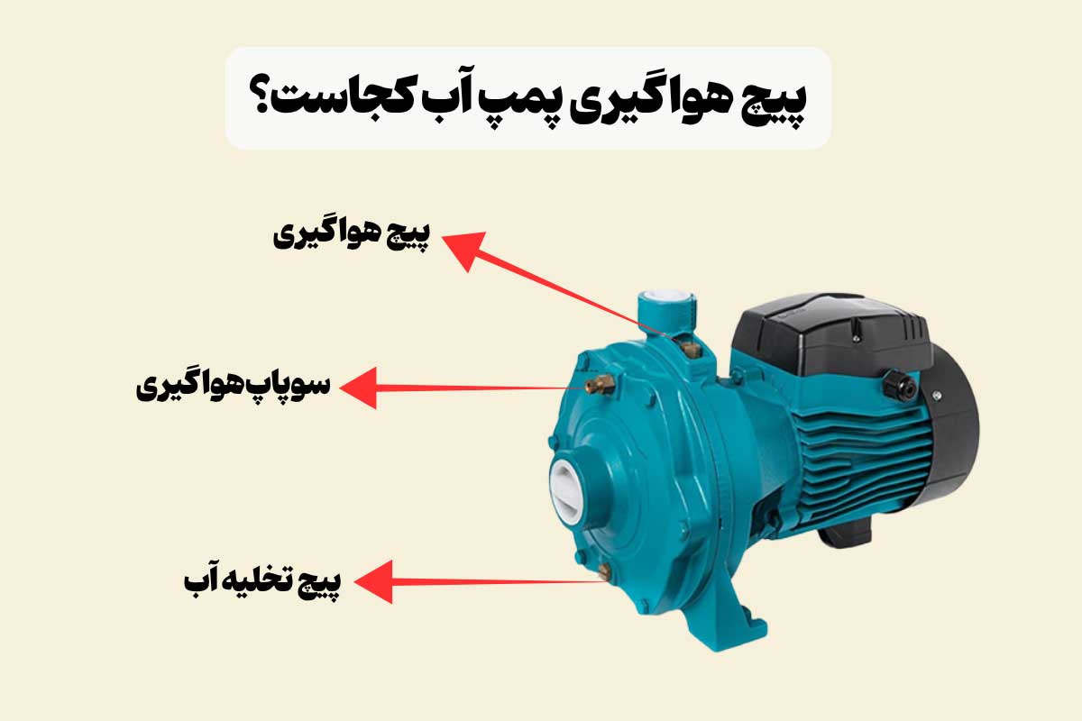 در پمپهای 0.5 الی 1.5 اسب بخار پیچ پرایم بر روی دریچه محل نصب پروانه قرار دارد. به کمک همین دریچه میتوانید هواگیری پمپ آب را طبق مراحل زیر انجام دهید: