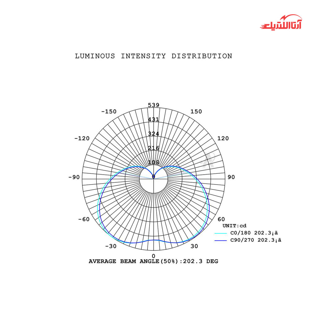 زاویه پخش نور (درجه)