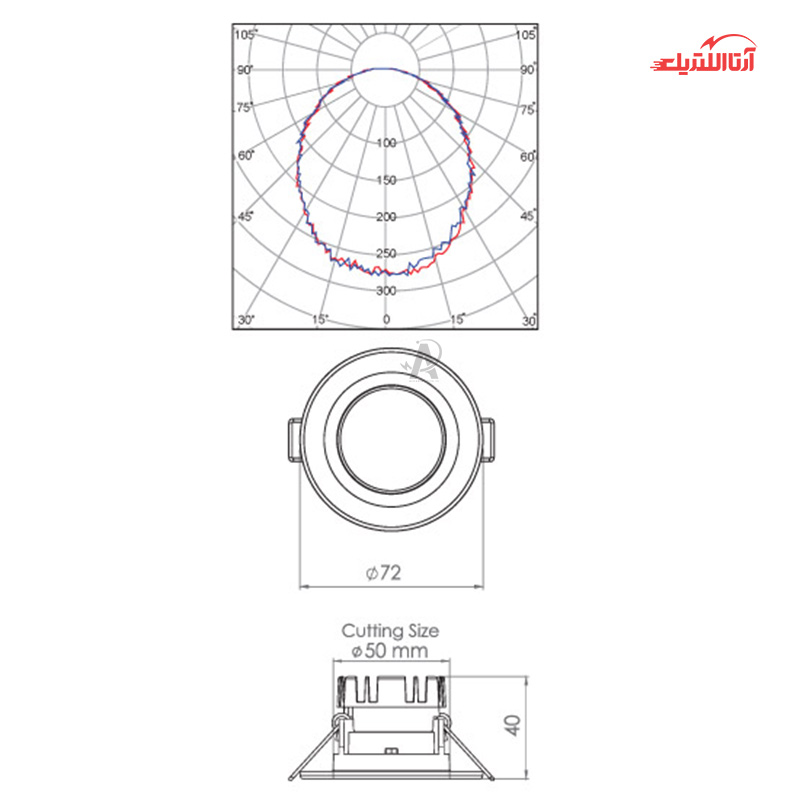 چراغ سقفی توکار ، همانگونه که از نامش مشخص است درون کار نصب می شود و ما تنها بخشی از چراغ را می بینیم که رویه پنل است و بیش از نیمی از چراغ درون کار می باشد. قطر داخلی محصول که درون کار قرار میگیرد 5 سانتی متر است و این میزان، اندازه فنر تا فنر پنل است و لبه بیرونی چراغ 7.2 سانتی است که این موضوع باعث گردیده تا تمامی حفره مورد نظر را پوشش دهد.