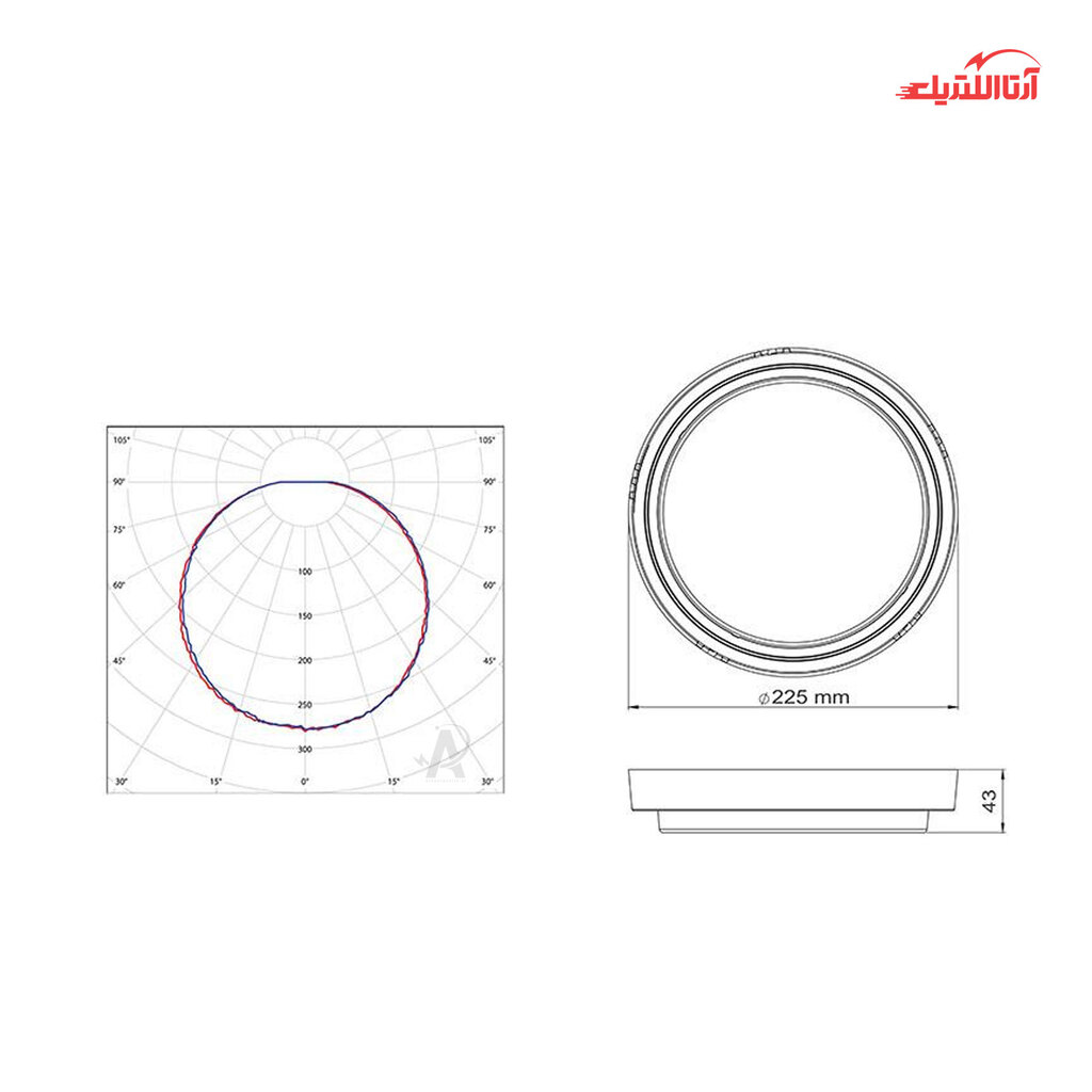 | ابعاد بیرونی چراغ (سانتیمتر) | قطر 25 |