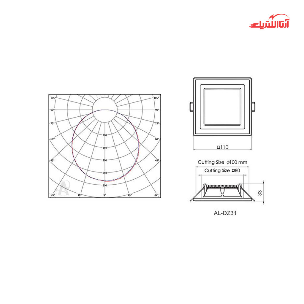 بررسی چراغ سقفی مربع توکار 6 وات برش 8 در 8 آلتون رای مدل زمرد AL-DZ31