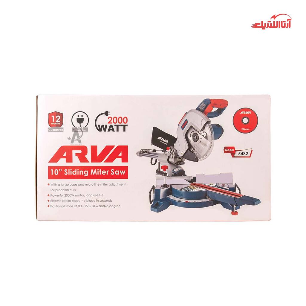 فارسی بر کشویی 254 میلی متری 2000 وات آروا مدل 5432، از جمله این تجهیزات است که به وسیله دستگاه‌های پیشرفته و با روش‌های روز دنیا ساخته می‌شود. این اره فارسی بر باکیفیت، دارای توان 2000 وات و تیغه الماسه با قطر 254 میلی‌متر است که برای کارهای صنعتی و ساختمانی، به کار می‌رود. اره فارسی بر آروا، با داشتن موتور قدرتمند و فوق صنعتی با سرعت فوق‌العاده 4800 دور در دقیقه با در حالت بی‌باری و زاویه برش به صورت زیر، می‌تواند برای استفاده‌های طولانی‌مدت به کار برده شود.