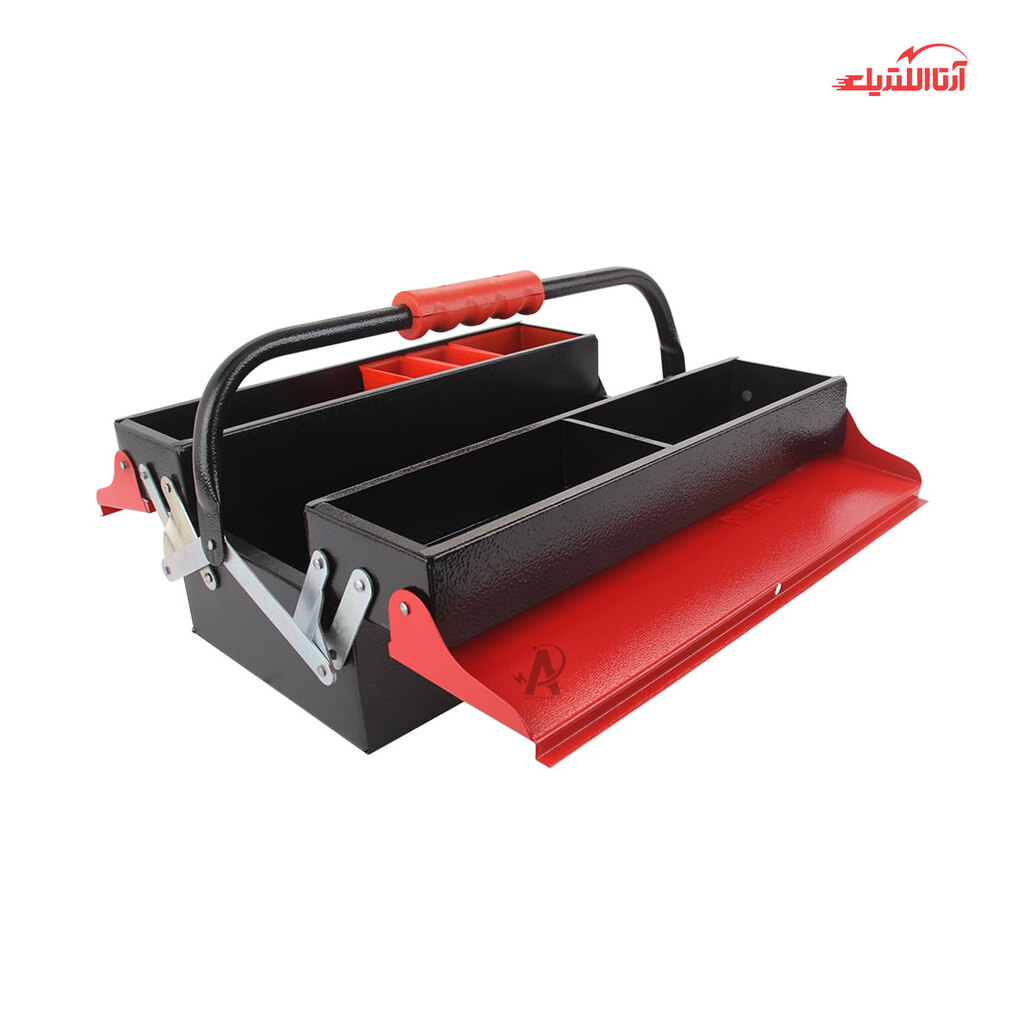 جعبه ابزار فلزی آروا 40 سانت 2 طبقه مدل 4705، با طراحی مستحکم و مقاومی که دارد موجب شده تا محل مناسبی برای قرار دادن ابزار آلات شما باشد. این محصول یکی از ابزارات تولید شده توسط برند آروا است که از فولاد ضد زنگ ساخته شده و موجب میشود که از اکسید شدن آن جلوگیری شود. جنس دسته این محصول از پلاستیک ABS ساخته شده است. این نوع جعبه ابزار دارای 2 طبقه است و در مجموع 2 محفظه کالا دارد، که محفظه اصلی برای نگهداری ابزار آلات بزرگ مورد استفاده قرار میگیرد، و بخش مجزای آن برای ابزارات کوچک مثل پیچ و مهره است. همچنین درب این جعبه ابزار به صورت اتوماتیک ساخته شده است تا استفاده از آن آسانتر شود. از ویژگی این وسیله، میتوان به مقاوم بودن در برابر ضربات و همچنین طول عمر بالای آن اشاره کرد.