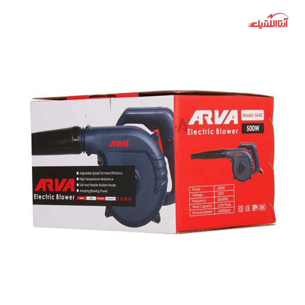 بلوور ۵۰۰ وات دیمر دار صنعتی آروا مدل 5642 از محصولات شرکت آروا که با ۱۲ ماه گارانتی عرضه می شود.قدرت دمندگی این دستگاه بسیار بالا بوده و موتور آن دارای توان ۵۰۰ وات است. این دستگاه مجهز به کیسه مخصوص گرد و غبار بوده و دارای لوله خرطومی نرم و انعطاف پذیر از جنس لاستیک به منظور دسترسی به نقاط دورتر می باشد.این دستگاه مجهز به کلید دیمر تنظیم سرعت است و مقاوم در برابر حرارت بوده و قابلیت تنظیم در دو حالت دمنده و مکنده را دارد. این بلوور دارای نازل پلاستیکی نرم و منعطف بوده و دارای قابلیت تعویض ذغال بدون باز کردن پوسته را دارد. بلبرینگ های این دستگاه ضدغبار بوده و طراحی صنعتی دارد.