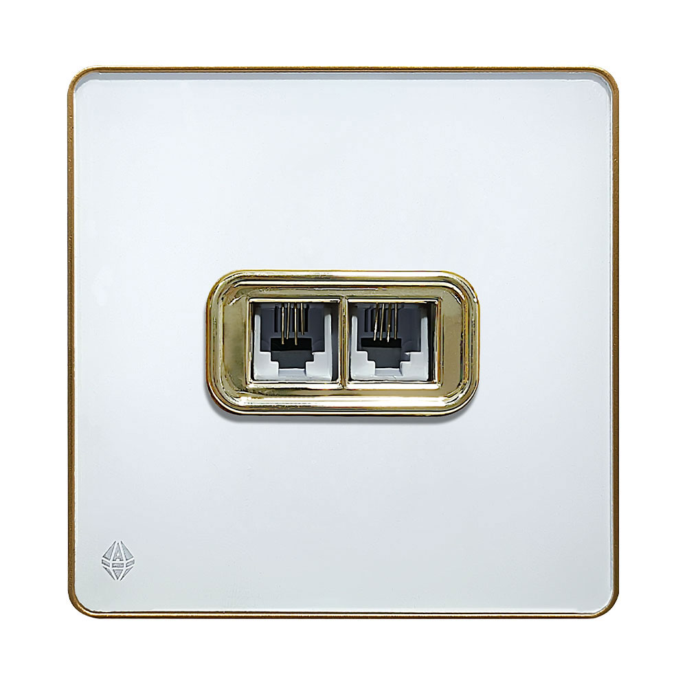 پریز تلفن دو سوکت (که گاهی اوقات به آن پریز دوقلو تلفن نیز گفته می‌شود) نوعی پریز دیواری است که به شما امکان می‌دهد دو دستگاه تلفن یا دستگاه‌های دیگر (مانند مودم ADSL) را به طور همزمان به یک خط تلفن متصل کنید. این پریزها معمولاً دارای دو پورت RJ11 هستند که استاندارد کابل‌های تلفن خانگی است