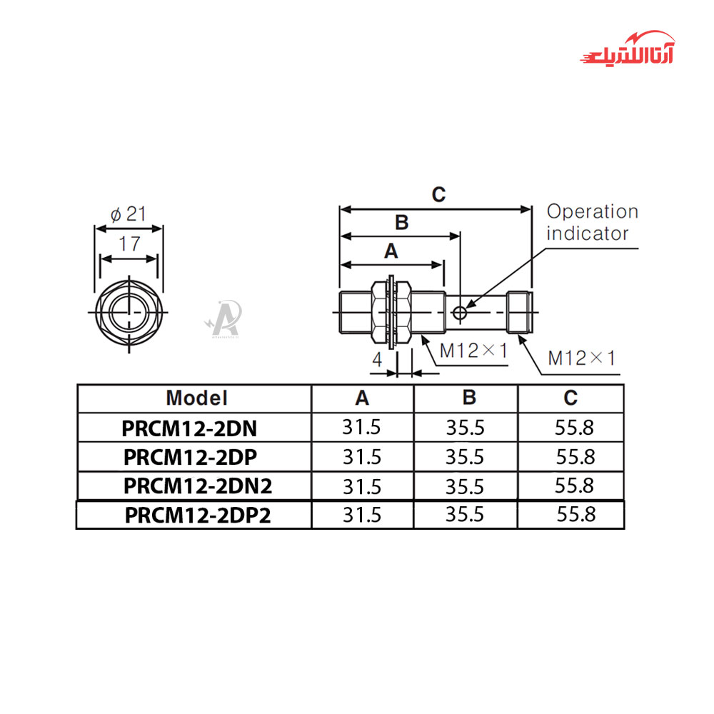 مشخصات فنی مهم سنسور القایی آتونیکس مدل PRCM12-2D