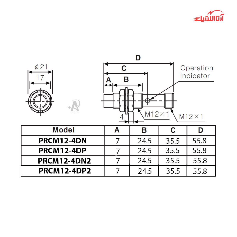 - مدل PRCM12-4DP2: مثبت درحالت عادی بسته (PNP NC)