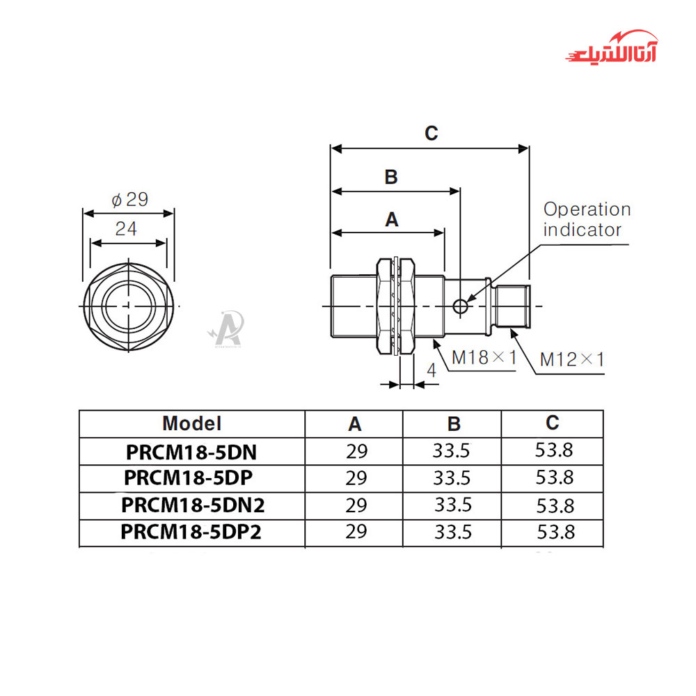 مشخصات فنی مهم سنسور القایی آتونیکس مدل PRCM18-5D