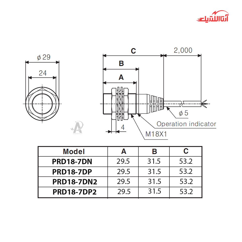 - مدل PRD18-7DP2: مثبت درحالت عادی بسته (PNP NC)