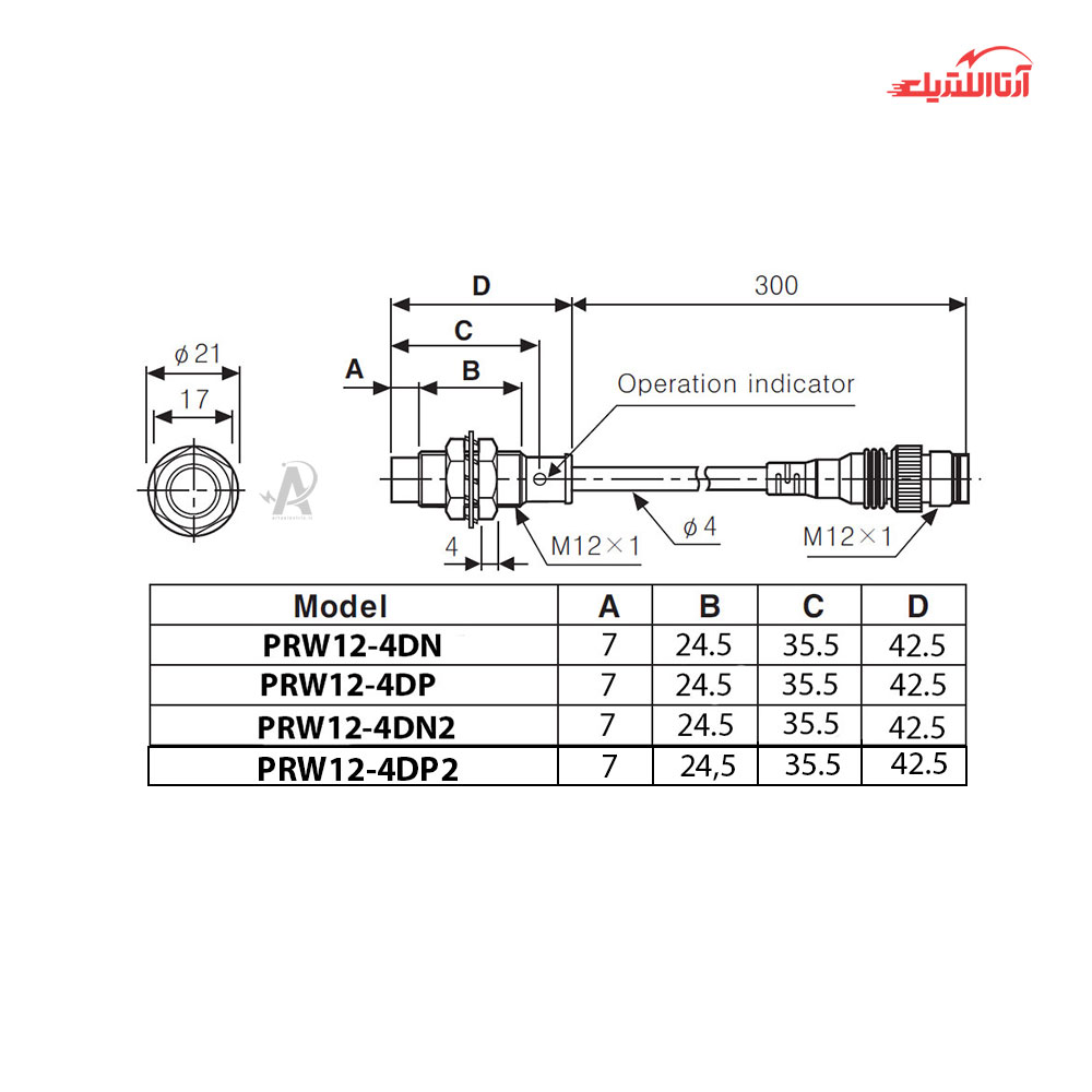 مشخصات فنی مهم سنسور القایی آتونیکس مدل PRW12-4D