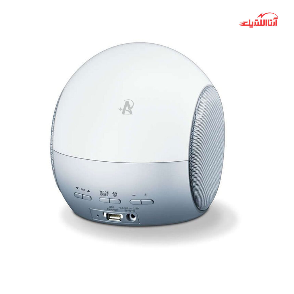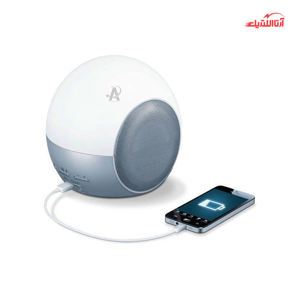 دستگاه چراغ خواب بیدار کننده بلوتوثی بیورر مدل WL 90 در واقع 4 وسیله است؛ چراغ خواب، چراغ مود، چراغ مطالعه و پخش موسقی است. امکان شارژ گوشی های هوشمند از طریق اتصال USB.شما می توانید بین رادیو، زنگ هشدار و 10 ملودی یکی را انتخاب کنید. دارای چراغ حالت LED با عملکرد تغییر رنگ، تنظیم رنگ فردی و تنظیم خودکار روشنایی صفحه نمایش. دارای عملکرد تعویق بین 1 تا 30 دقیقه، قابل استفاده به عنوان چراغ مطالعه ،دارای ورودی Aux برای پخش موسیقی ،توانایی پخش موسیقی از طریق بلوتوث.