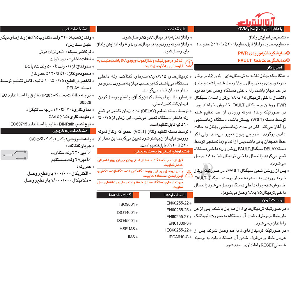 | استاندارد | EN 60255-22, EN 60255-25, EN 60255-27, EN 61000-3, IEC 60255-22, IPCA610-C |