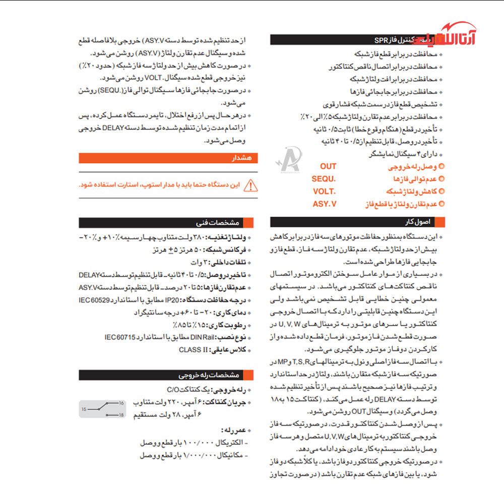 - محافظت در برابر قطع فاز شبکه
