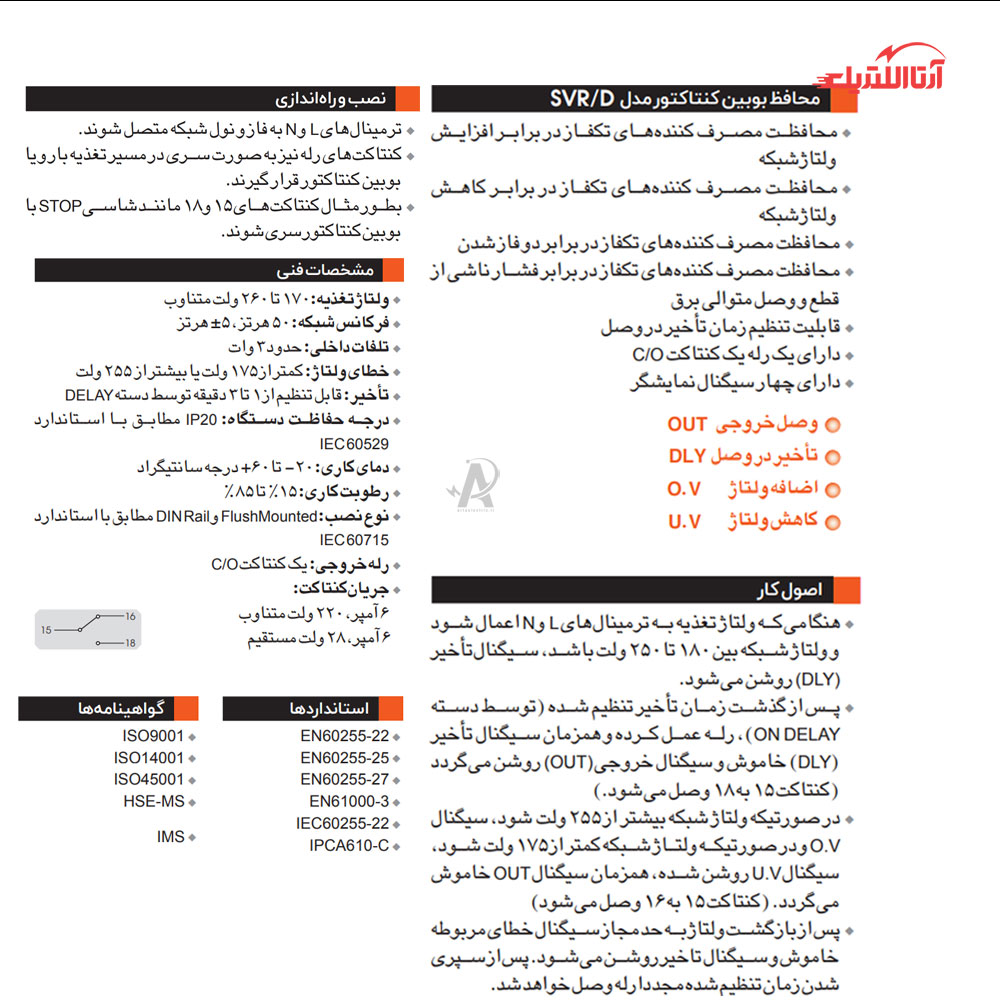 محافظ ولتاژ تک فاز و بوبین کنتاکتور برنا الکترونیک مدل SVR/D
