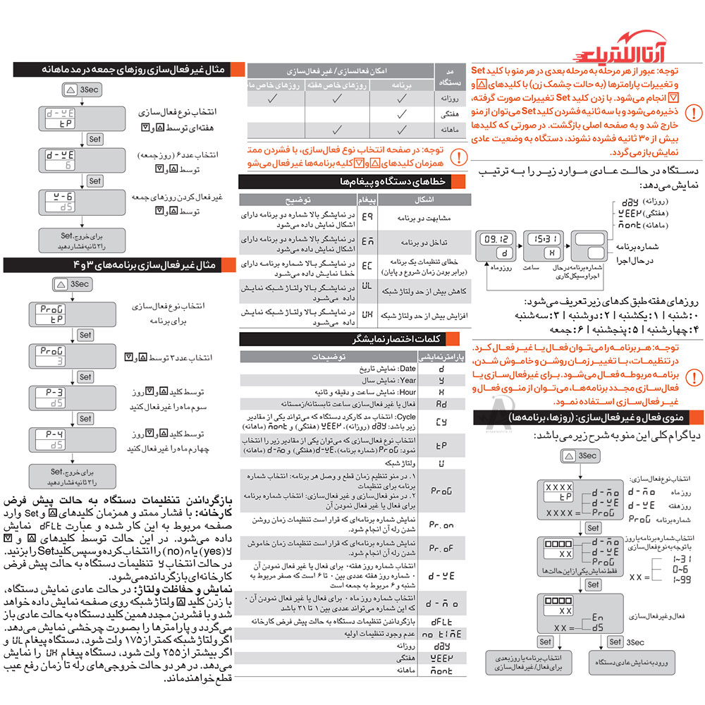 | نوع تایمر | زورانه, ماهانه, هفتگی |