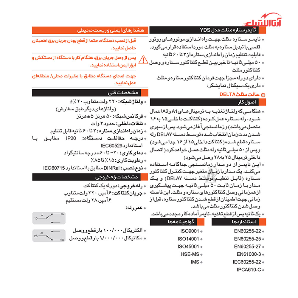 تایمر ستاره مثلث دو رله ای برنا مدل YDS
