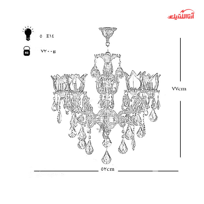 لوستر ۵ شعله چشمه نور کد C2139/5-AO