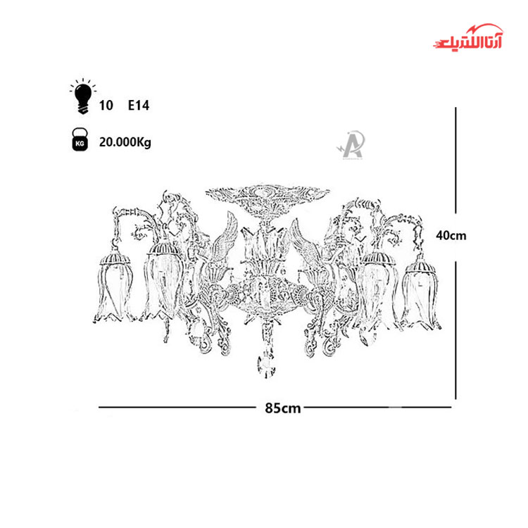 لوستر ۱۰ شعله چشمه نور کد C2728/5-A