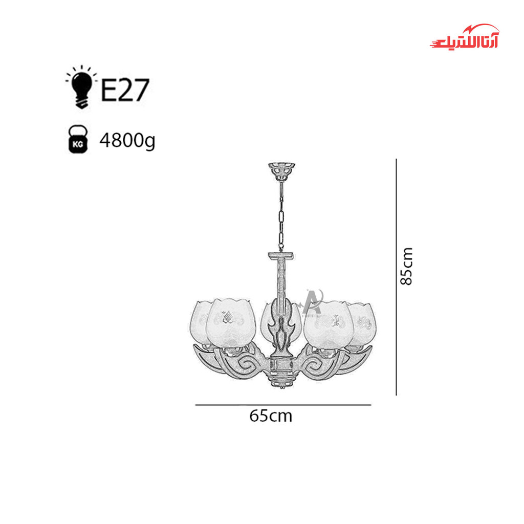 لوستر ۵ شعله چشمه نور کد G501/5-BR