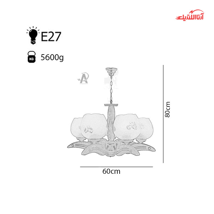 لوستر چوبی ۷ شعله چشمه نور کد G504/7-BR