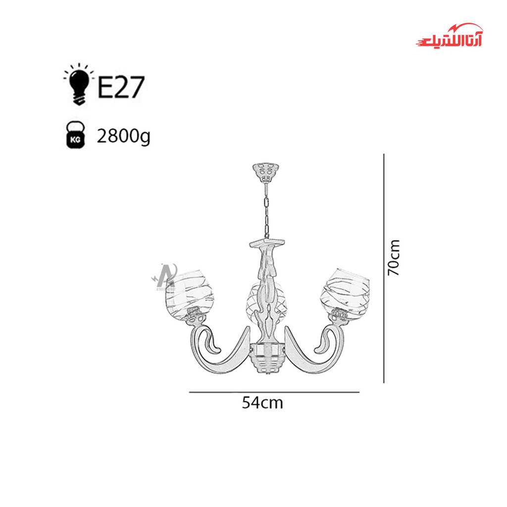 لوستر ۳ شعله چشمه نور کد G596/3-BR