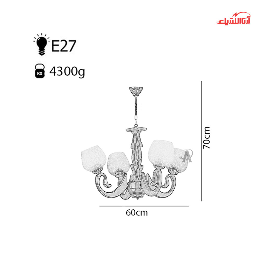 لوستر ۴ شعله چشمه نور کد G597/4-BR