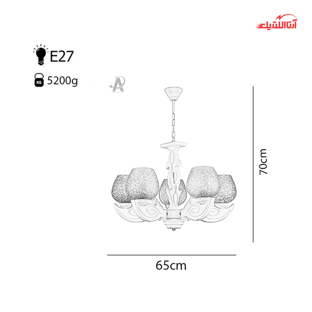 لوستر پنج شعله چشمه نور کد G601/5-WT