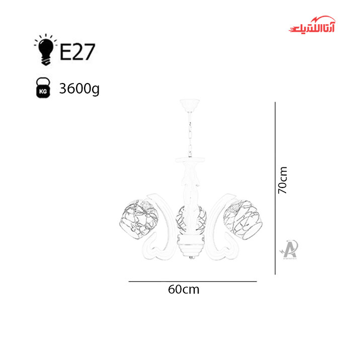 لوستر ۳ شعله چشمه نور کد G640/3-WT
