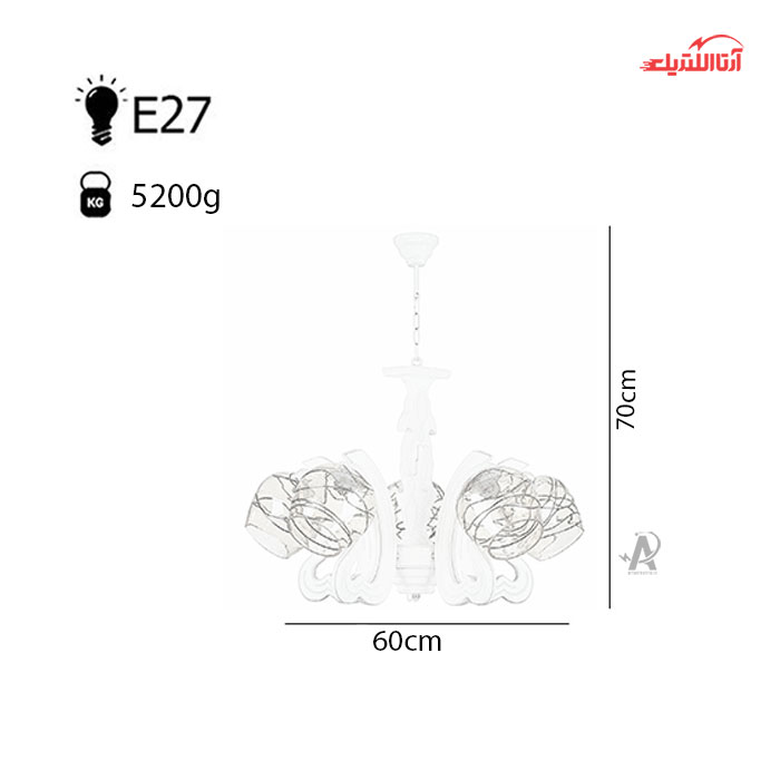 لوستر ۵ شعله چشمه نور کد G640/5-WT