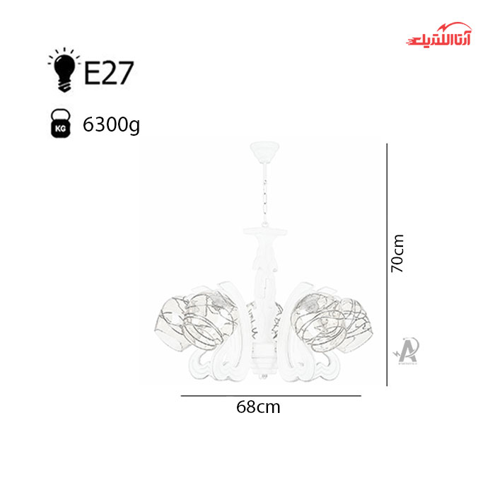 لوستر ۶ شعله چشمه نور کد G640/6-WT