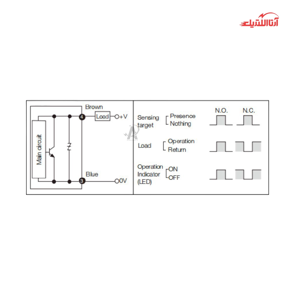 NO (حالت عادی باز): در حالت عادی، مدار باز است و جریانی از آن عبور نمیکند. با فعال شدن یک شرط خاص (مثلاً نزدیک شدن یک جسم به سنسور)، مدار بسته شده و جریان برقرار میشود.