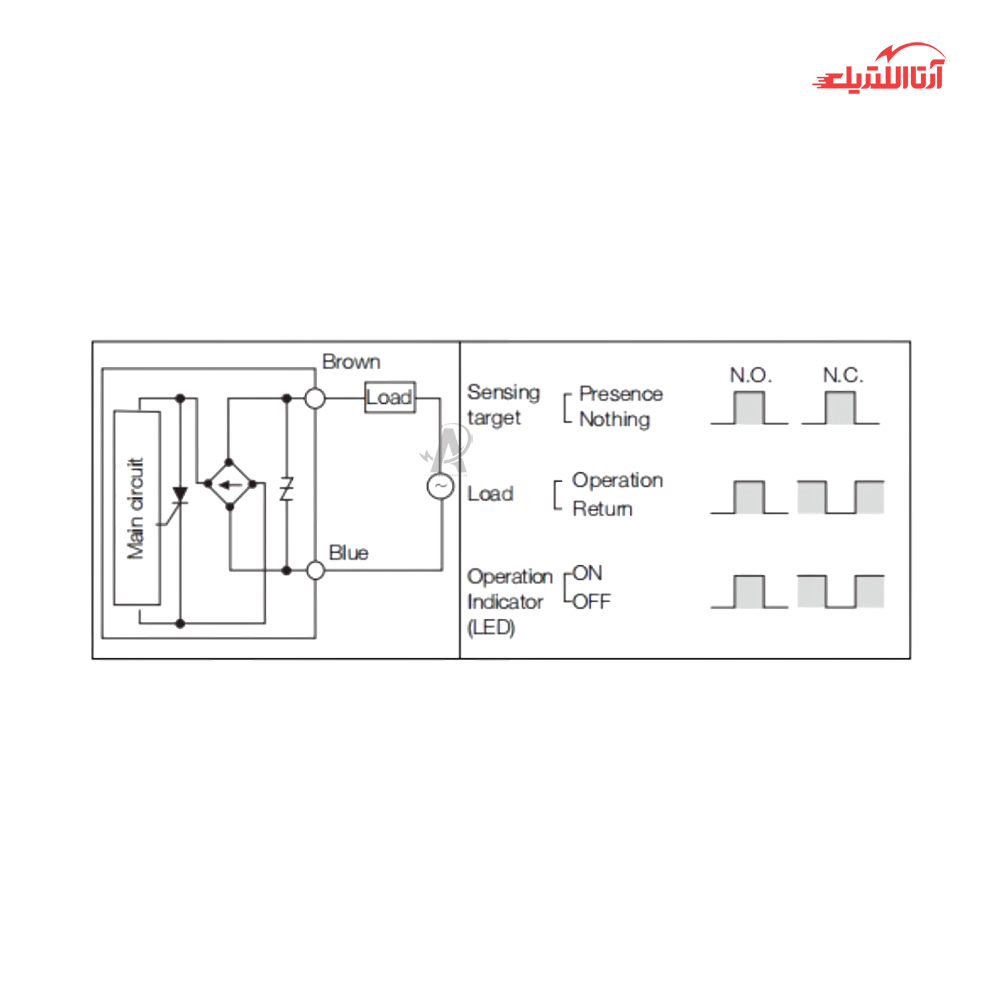 NO (حالت عادی باز): در حالت عادی، مدار باز است و جریانی از آن عبور نمیکند. با فعال شدن یک شرط خاص (مثلاً نزدیک شدن یک جسم به سنسور)، مدار بسته شده و جریان برقرار میشود.