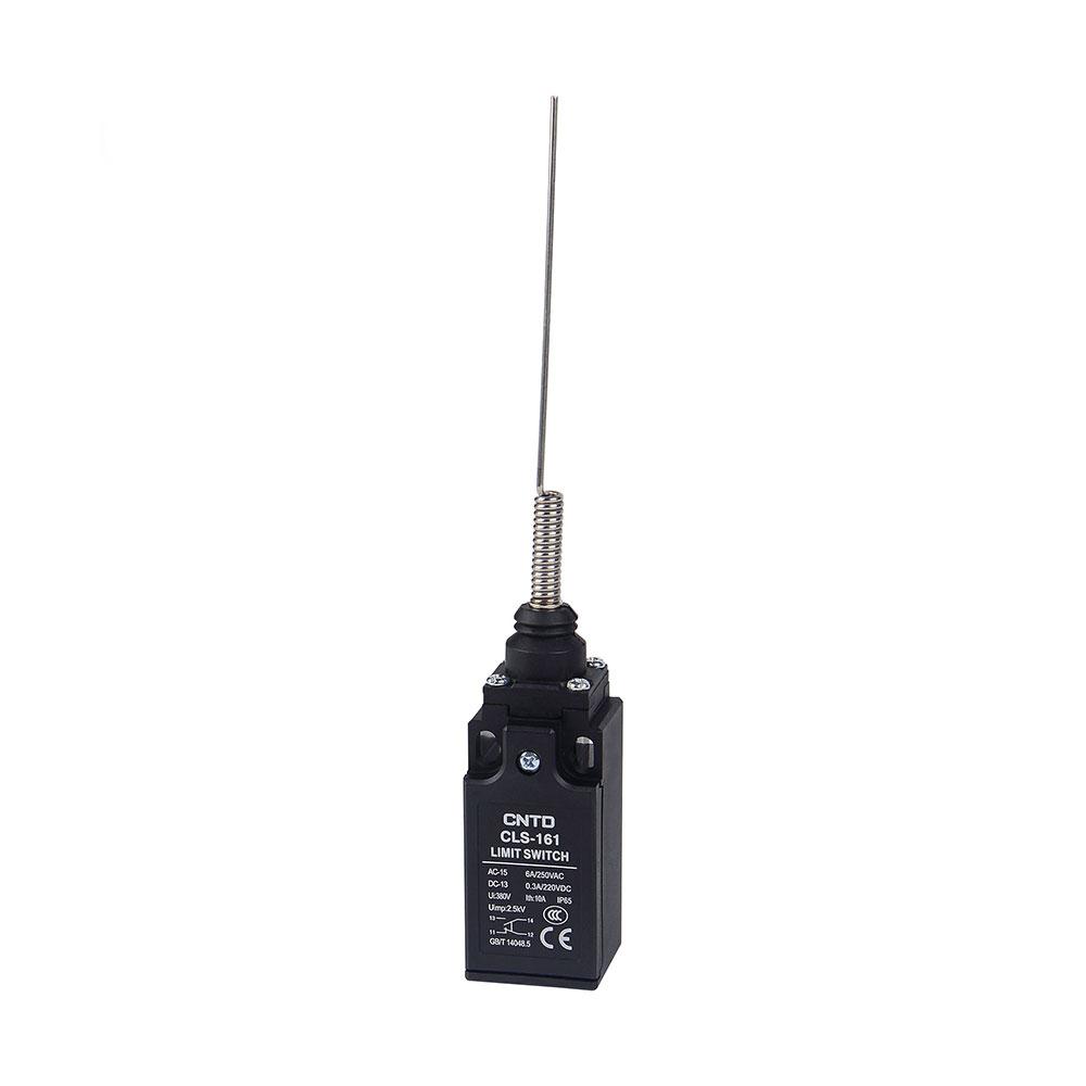 لیمیت سوئیچ آنتنی باکالیت CNTD مدل CLS-161، یک قطعه کلیدی در سیستم‌های کنترل صنعتی است که با دقت و اطمینان بالا، موقعیت و حرکت اجسام را تشخیص می‌دهد.این لیمیت سوئیچ  یک کلید الکترومکانیکی با عملگر فنری آنتنی است که برای تشخیص موقعیت قطعات متحرک در سیستم‌های صنعتی طراحی شده است. یکی از ویژگی‌های بارز لیمیت سوئیچ آنتنی  CLS-161، بهره‌مندی از فنر فلزی خمیده و بلند است. این طراحی خاص باعث افزایش انعطاف‌پذیری و دقت عملکرد در مواجهه با تماس‌های نرم، زاویه‌دار یا غیرمستقیم می‌شود. فنر خمیده به دستگاه این امکان را می‌دهد که حتی در برخوردهای با زاویه کم یا فشارهای سطحی نیز واکنش مناسبی نشان دهد، بدون اینکه دچار آسیب مکانیکی شود. CLS-161 با ساختار مستحکم و درجه حفاظت IP66، در برابر گرد و غبار، رطوبت و ضربه مقاوم است و عملکرد پایدار خود را در شرایط مختلف حفظ می‌کند. این میکروسوئیچ، انتخابی ایده‌آل برای کاربردهایی است که دقت، اطمینان و دوام در اولویت قرار دارند.