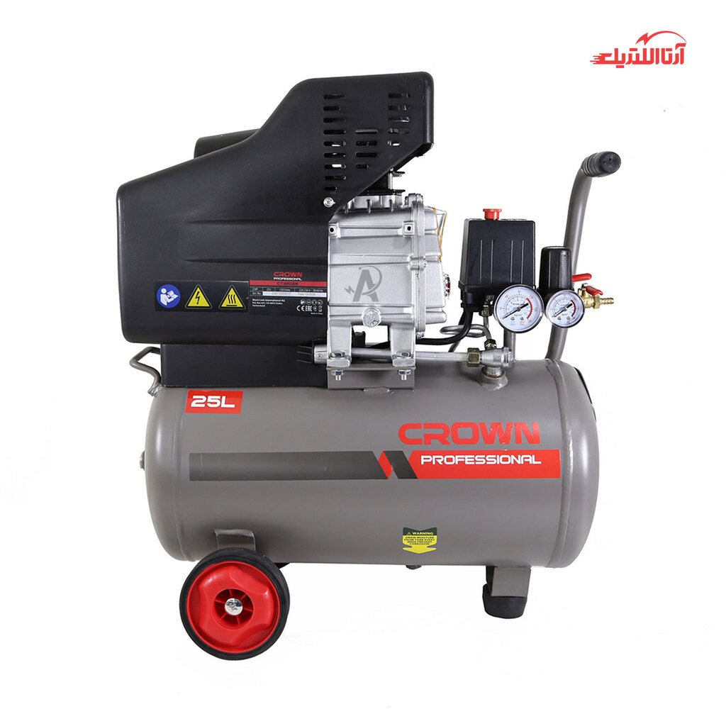 کمپرسور باد 25 لیتری کرون مدل CT36028، دستگاهی برای فشرده سازی هوا است که در کارهای صنعتی و نیمه صنعتی کاربرد دارد. این دستگاه دارای موتوری با قدرت 2 اسب بخار است، که با سرعت 2800 دور در هر دقیقه حرکت میکند. موتور آن از نوع القایی تولید و با مس سیم پیچی شده است. این دستگاه دارای رگلاتور نشان دهنده فشار است، که با توجه به نیاز کاربر فشار خروجی تنظیم میشود و حداکثر این فشار باد خروجی در دستگاه 8 بار است.جنس پیستون این کمپرسور از آلومینیوم و رینگ آن با آلیاژ ساخته شده است تا از داغ شدن در مصارف طولانی جلوگیری شود. این دستگاه مجهز به سیستم اتوماتیک است که در صورت افزایش فشار داخل مخزن، دستگاه به صورت خودکار خاموش میشود. از ویژگی دیگر این دستگاه، میتوان به مجهز بودن فن خنک کننده موتور اشاره کرد. همچنین به منظور کارکرد و حمل آسان دستگاه، چرخ هایی در کفه آن منصوب شده است.