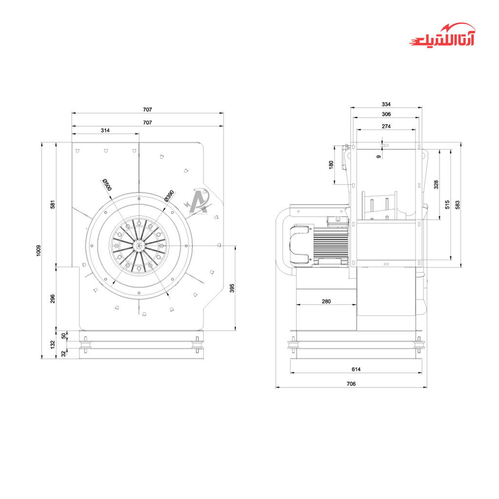 بررسی سانتریفیوژ تک فاز یکطرفه بکوارد نمره 45 دمنده مدل BIB-45/14-DN90-4S