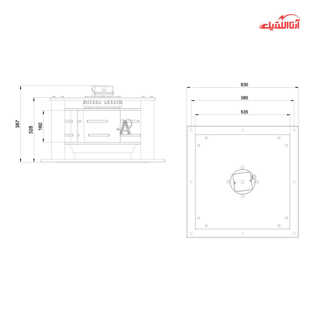 | ابعاد | 63 × 63 × 38.7 سانتیمتر |