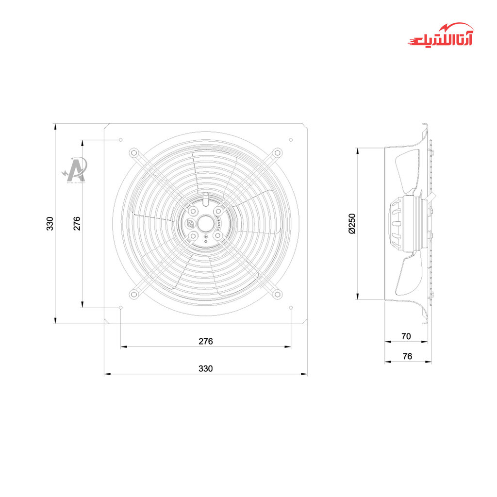 | قطر پروانه (cm) | 25 |