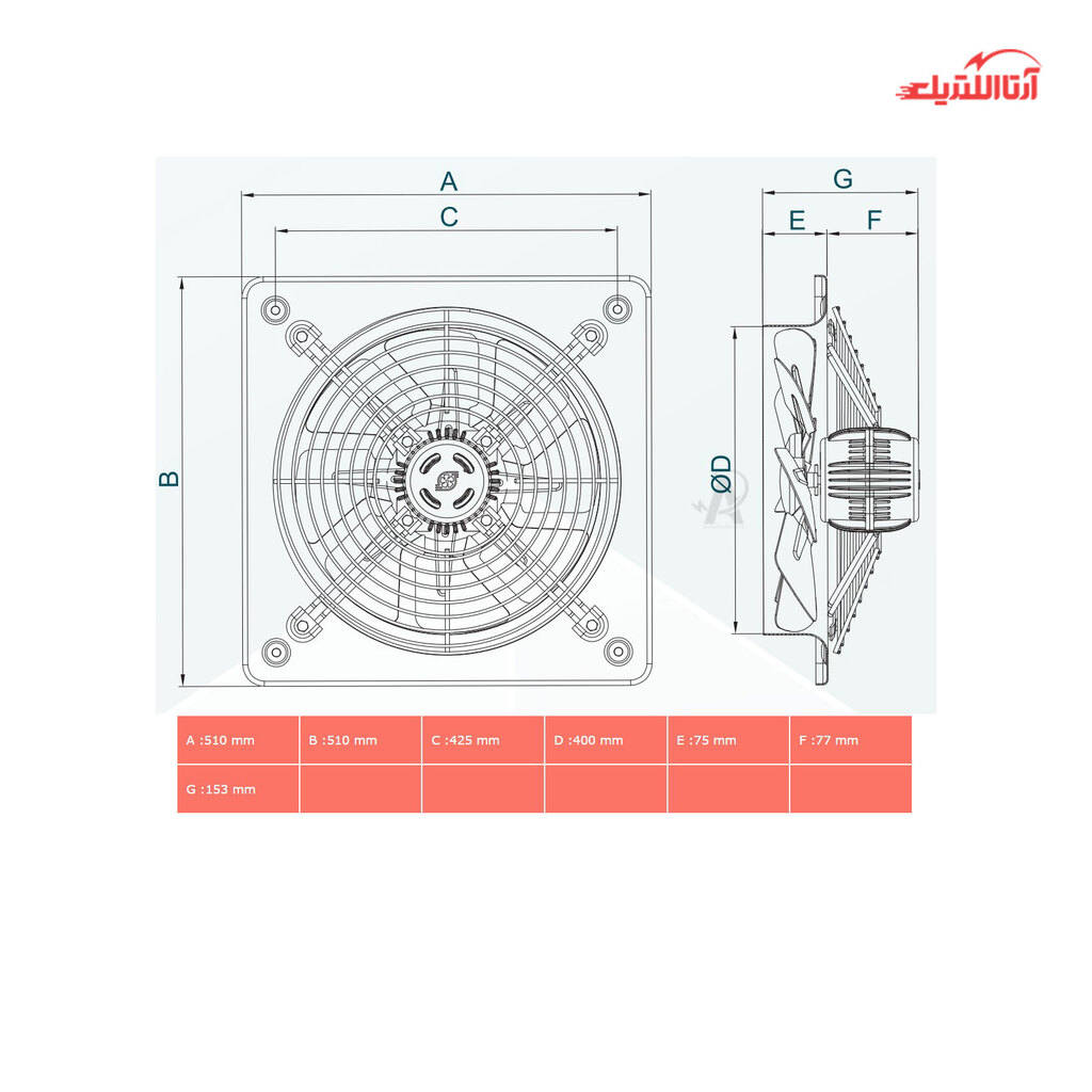 | ابعاد | 51 × 51 سانتیمتر |