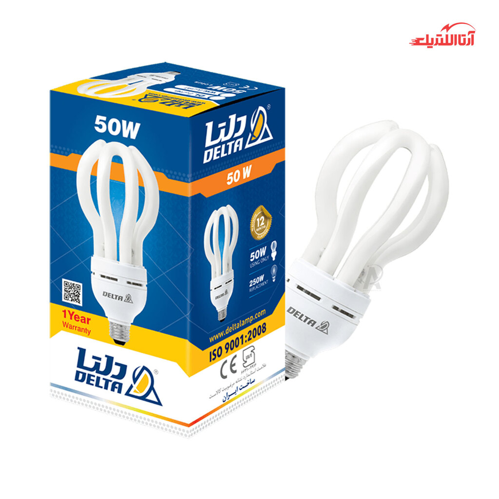 لامپ کم مصرف دلتا، با فناوری فلورسنت ساخته میشود و طول عمر بیش از 8000 ساعت دارد که 8 برابر لامپ رشتهای است. لامپ 50 وات لوتوس دلتا توانسته علاوه بر نشان ملی استاندارد ایران، نشان CE اروپا و ISO 9001:2008 و ISO 9001:2015 را به دست آورد، که نشان دهنده کیفیت خوب آن است. این لامپ با برق 220 ولت شهری کار میکند.