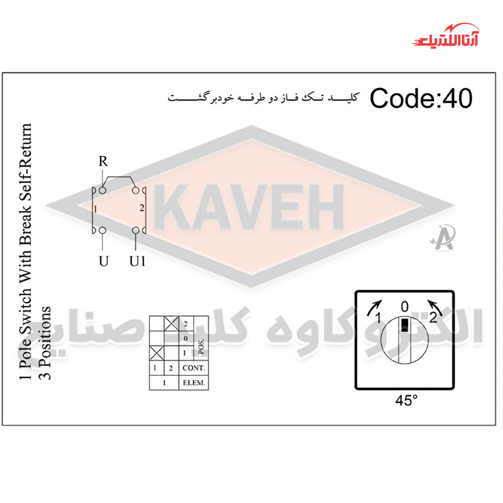 کلید گردان معمولی 25 آمپر تکفاز دوطرفه خود برگشت الکترو کاوه کد 2540
