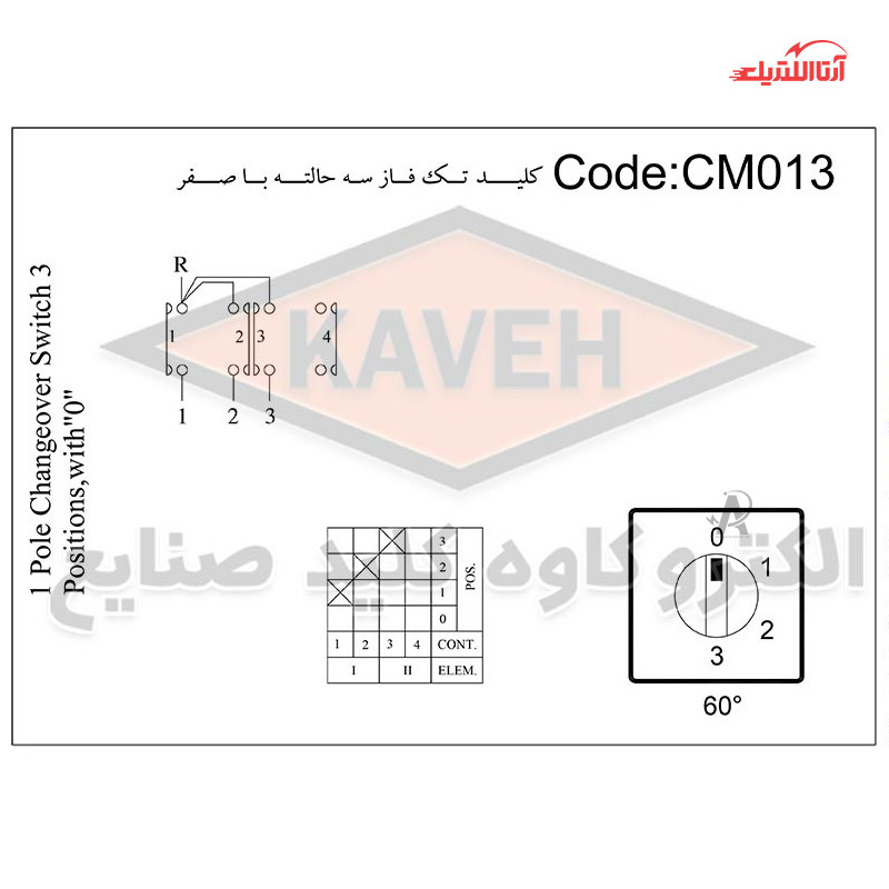 کلید سلکتوری 16 آمپر تکفاز سه حالته با صفر الکترو کاوه کد CMO13